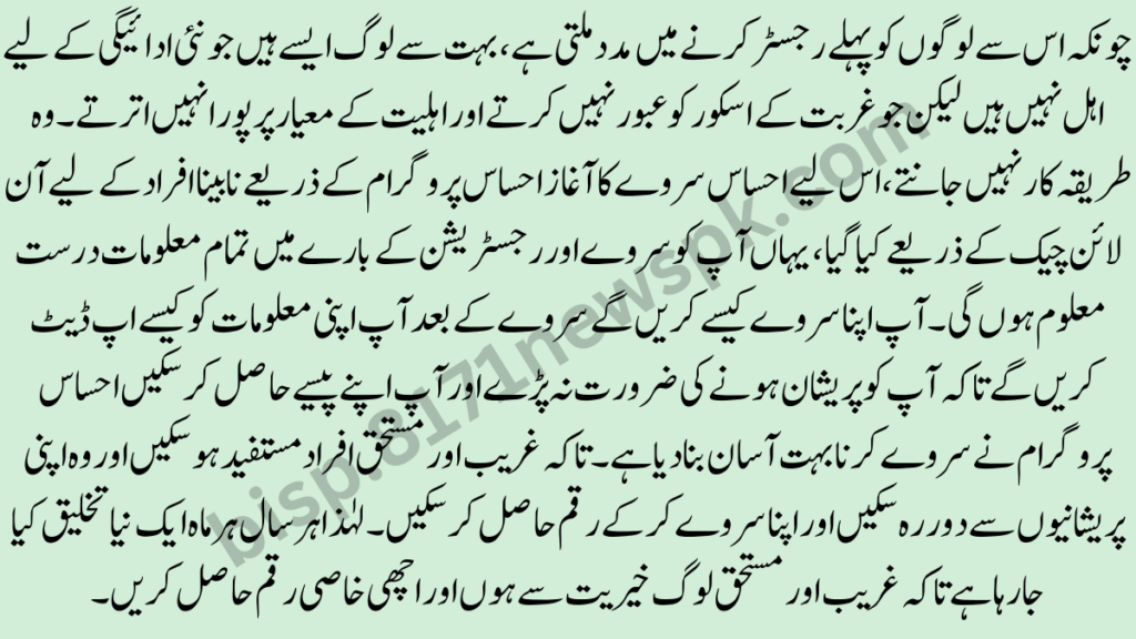 Because it helps people register earlier, there are many people who don’t qualify for the new payment but who don’t cross the poverty score and meet the eligibility criteria. They don’t know the procedure, so the Ehsaas survey was start by the Ehsaas Program Online Check for the blind, here you will be true all the information about the survey and how to register. How will you do your survey How will you update your information after the survey so that you don’t have to worry and you can get your money Ehsaas program has make it very easy to do a survey.