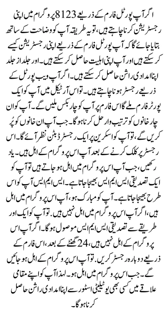 آن لائن رجسٹریشن 8123 راشن پروگرام کیسے کریں۔