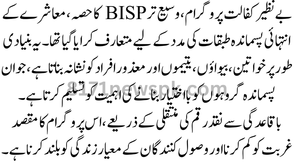 The Benazir Kafalat Program, part of the broader BISP, was introduced to assist the most disadvantaged segments of society. It primarily targets women, widows, orphans, and disabled individuals, recognizing the importance of empowering these marginalized groups. Through regular cash transfers, this program aims to alleviate poverty and uplift the living standards of the recipients.