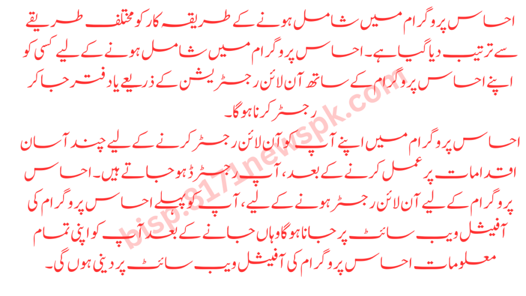 Ehsaas Program Registration Joining the Ehsaas program was made very easy. After joining the program you have to check your eligibility. To join the Ehsaas program you have to give all your related comments. After joining this program you had to develop your qualification which is a very mandatory process