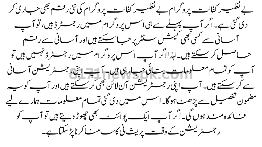 Benazir Kafalat Program The new amount of the Benazir Kafalat program has also been released. If you are already registered in this program, you can easily visit any cash center and get money easily. So if you are not registered in this program then you are being told all the information. You can do your registration easily.