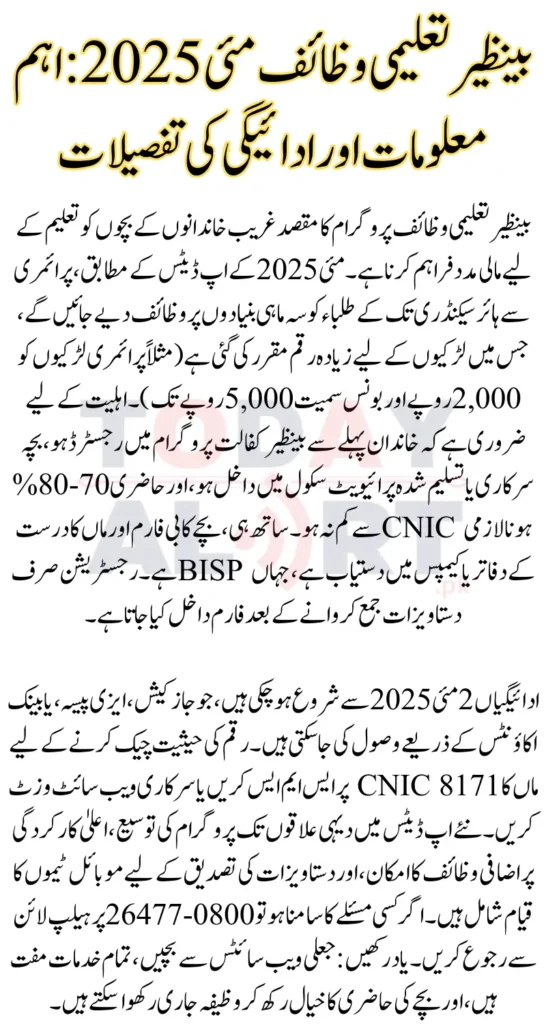 Benazir Taleemi Wazaif Payment May 2025 Eligibility Details