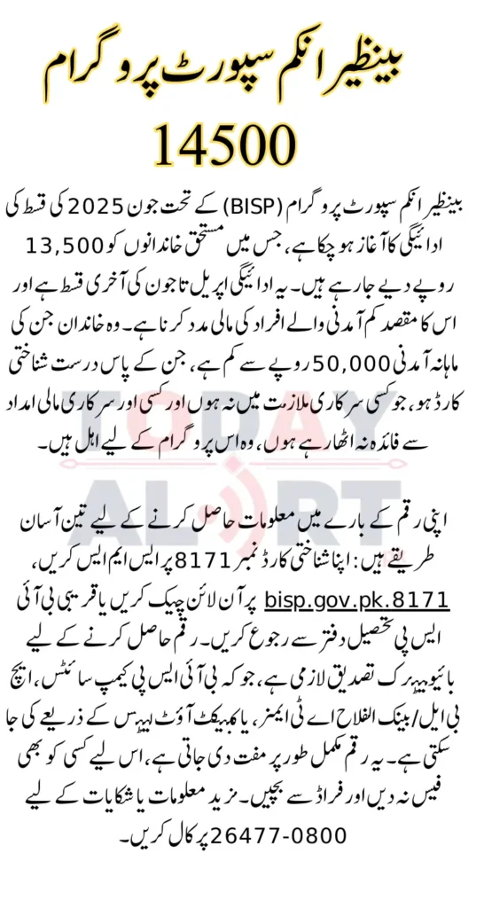 Also Read: BISP 14500 May 2025 Payment Status by ID Card