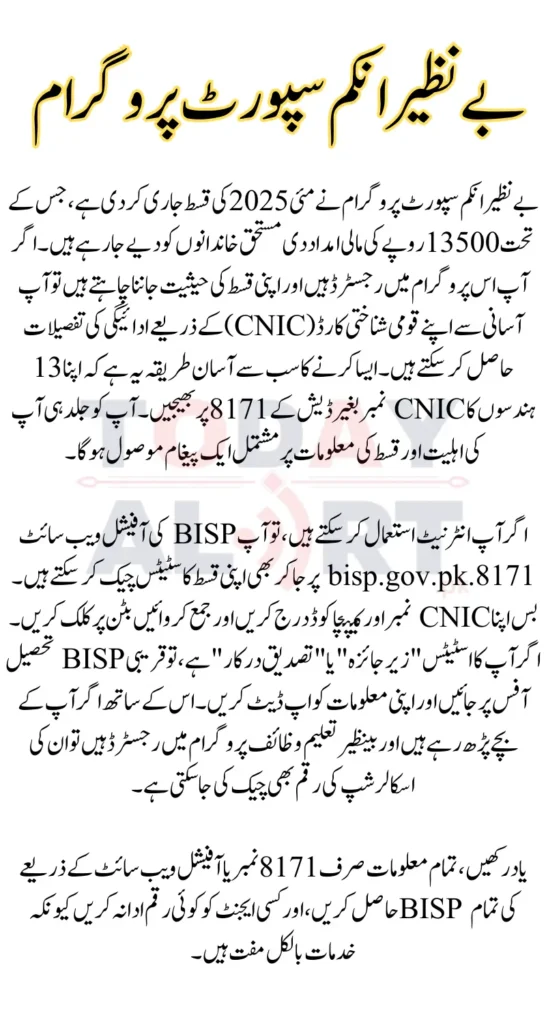 Also Read: BISP 8171 Payment May 2025 Verification Online Via CNIC