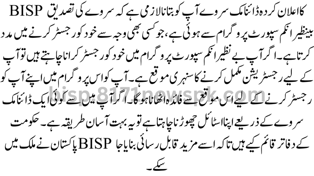BISP Announced Dynamic Survey For Registration Update 2025