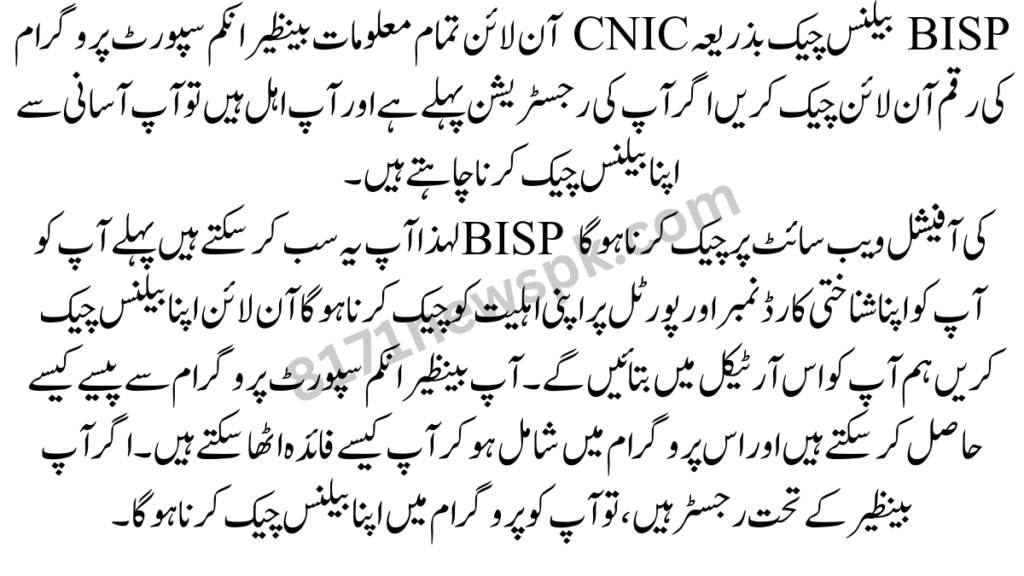 BISP Balance Check By CNIC Online All Information Benazir Income Support Program Amount Check Online If you have your registration earlier and you are eligible then you want to check your balance easily.