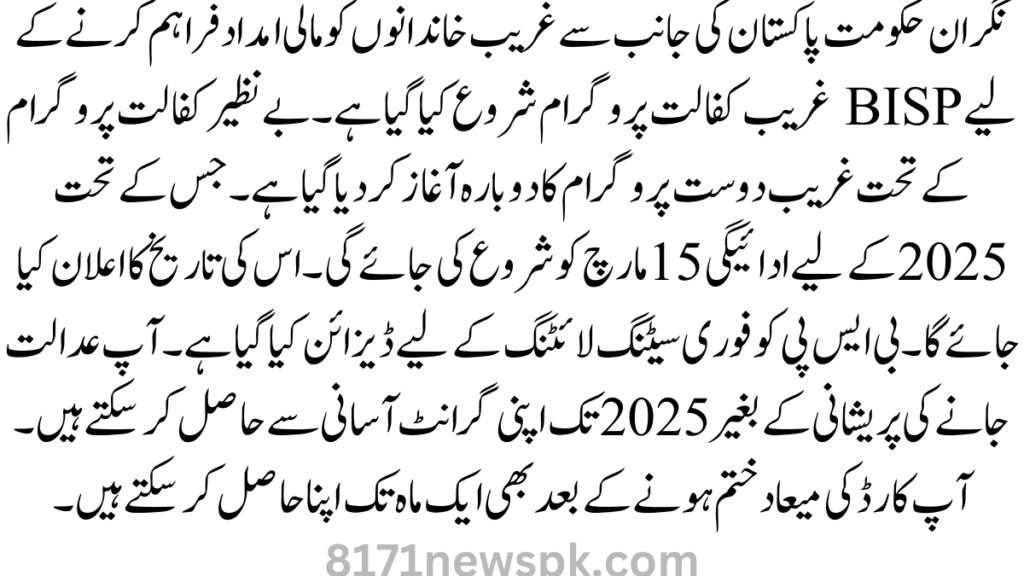 BISP Gareeb Kafalat Program 2025 New Payment Date