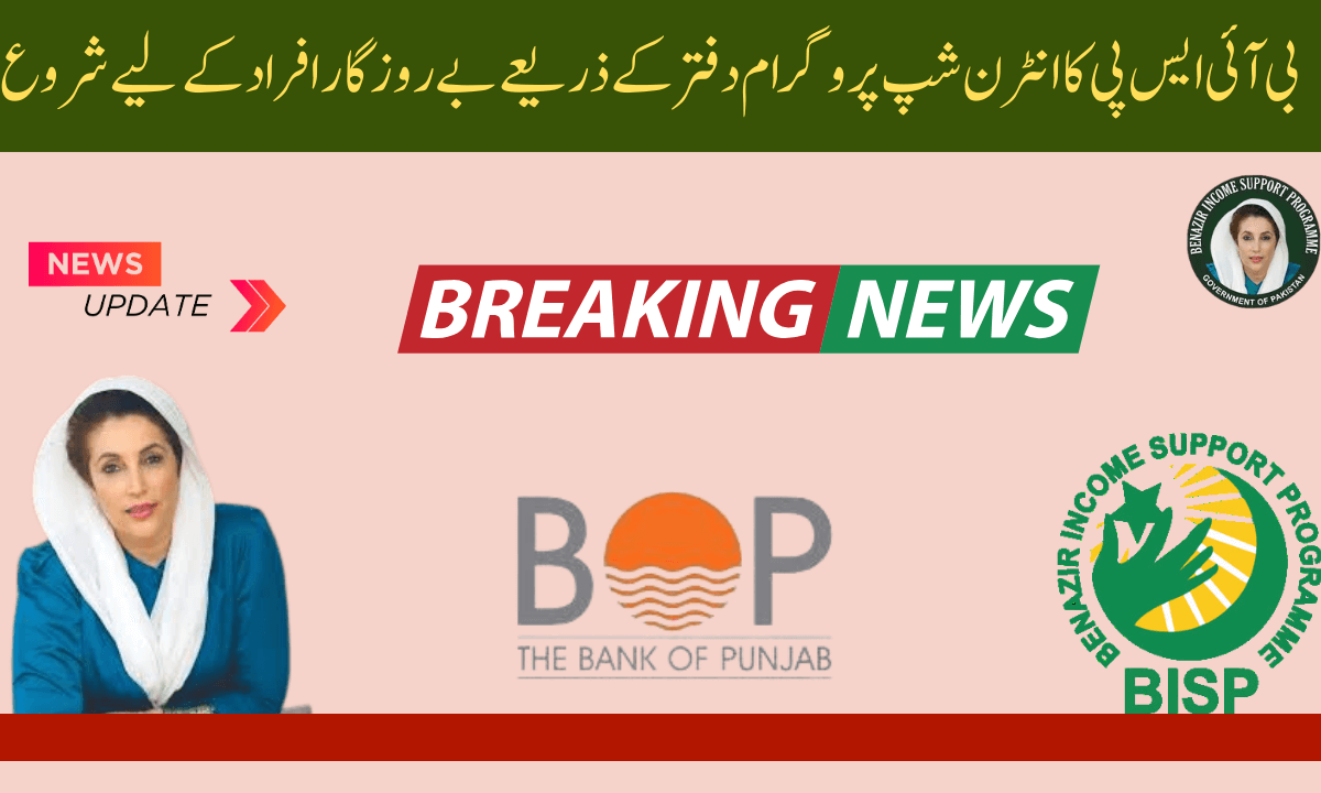 بی آئی ایس پی انٹرن شپ پروگرام ملک میں غربت کے خاتمے کا پروگرام ہے۔ BISP انٹرن شپ پروگرام بینظیر انکم سپورٹ پروگرام کے ذریعے شروع کیا گیا ہے۔ اس پروگرام کا مقصد نوجوانوں کو تربیت اور ہنر مندی کے مواقع فراہم کرنا ہے تاکہ وہ اپنی ملازمت میں اضافہ کر سکیں اور پاکستان کی معاشی ترقی میں اپنا حصہ ڈال سکیں۔ بی آئی ایس پی انٹرن شپ پروگرام بینظیر انکم سپورٹ پروگرام کے ذریعے طلباء اور نوجوانوں کو ملازمتیں فراہم کرنے کے لیے شروع کیا گیا ہے۔