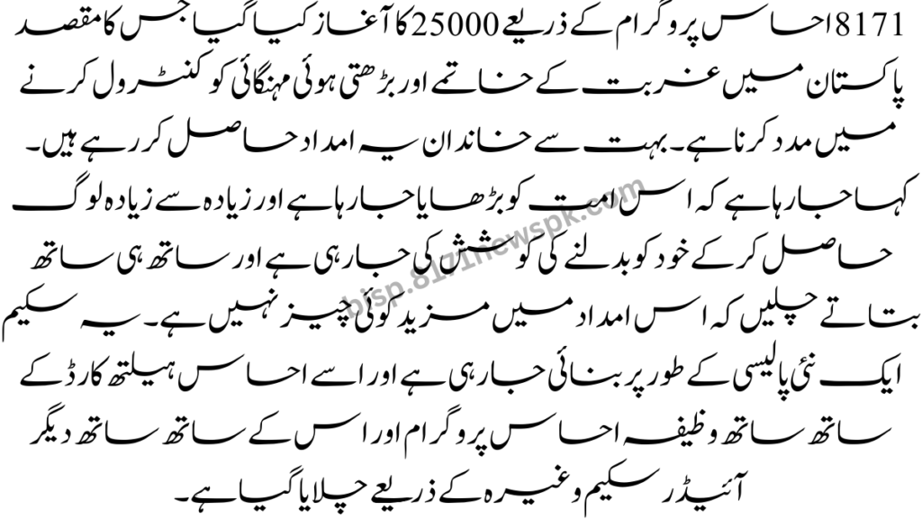 Ehsaas Program New Registration: 8171 Launched 25000 Through Ehsaas program aims to assist in eradicating poverty in Pakistan and control rising inflation. Many families are receiving this assistance. It is being said that this ummah is being increased and trying to change itself by getting more people and at the same time let us tell you that there is no more in this aid. The scheme is being created as a new policy and has been conducted by the Wazifa Ehsaas Program along with Ehsaas Health Card and along with this other Idar Scheme etc.