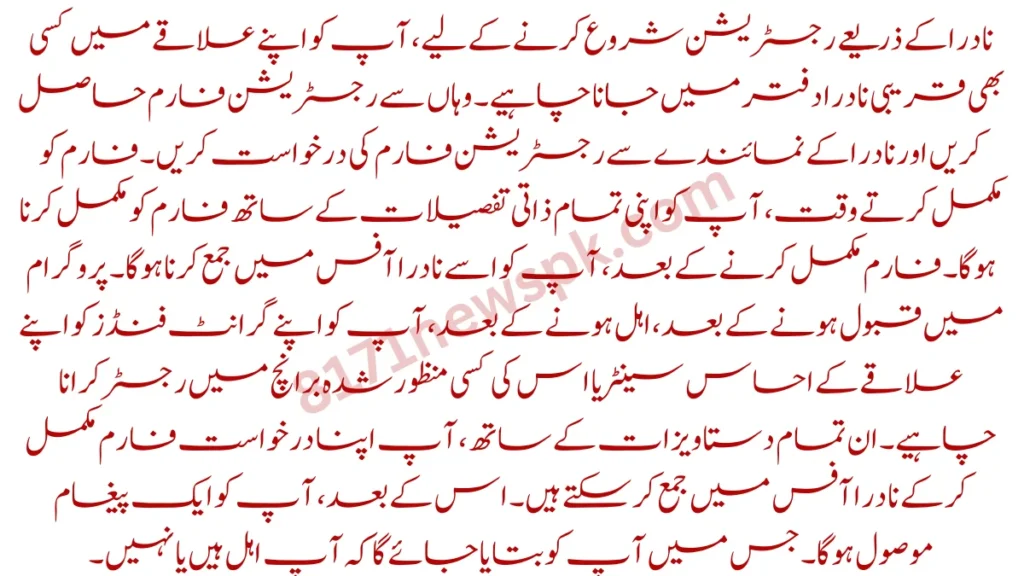 To start registration through NADRA, you should go to any nearby NADRA office in your area. Get the registration form from there and request the registration form from the NADRA representative. While completing the form, you have to complete the form with all your personal details. After completing the form, you have to submit it to the NADRA office. After being accepted in the program, after being eligible, you should register your grant funds in the Ehsaas Center of your area or any of its approved branches. With all these things, you can complete your application form and submit it to the NADRA office. After that, you will receive a message. In which you will be informed whether you are eligible or not.