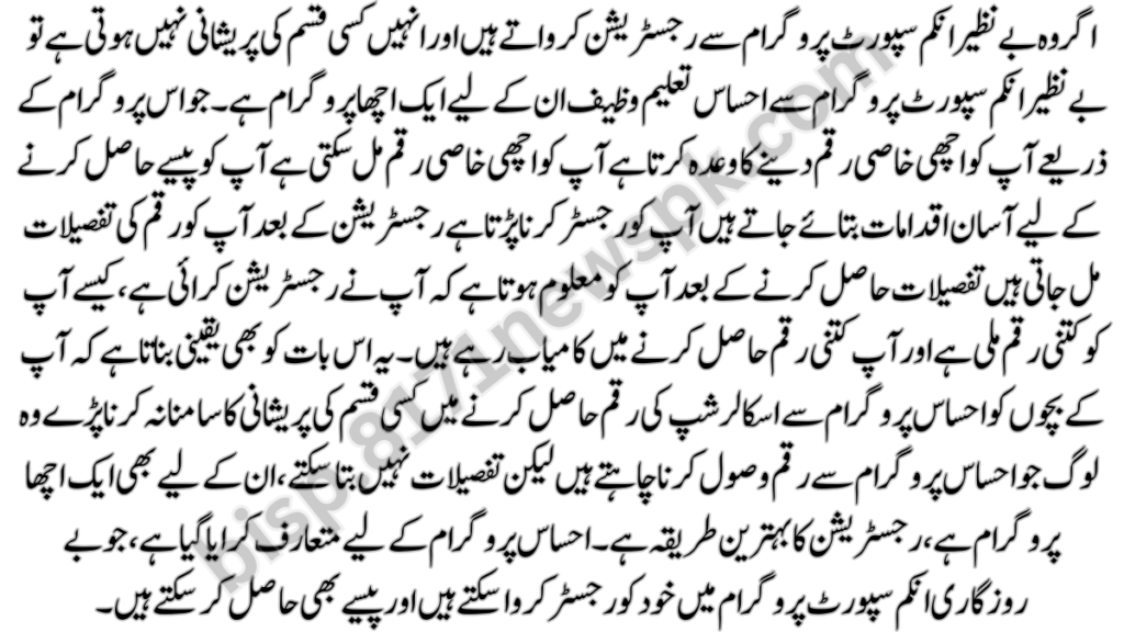 From Ehsaas Program People who want to receive money from the Ehsaas Program But cannot tell the details, there is a good program for them too, the best method for registration has been introduce for the Ehsaas program, who can register themselves in the unemployment income support program and also get money.