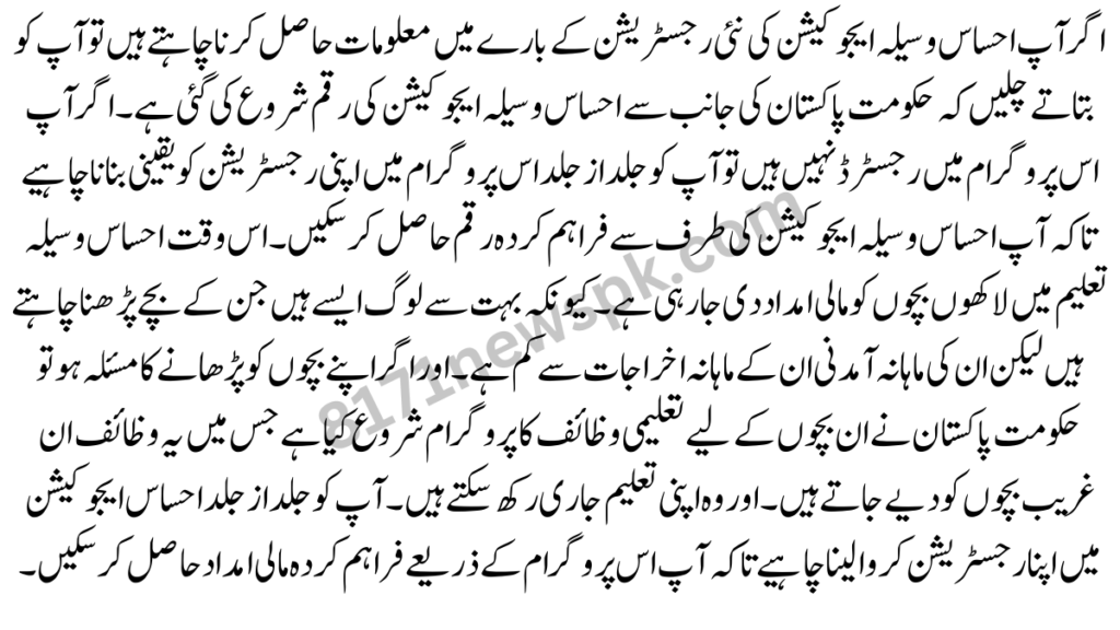 So at the same time you receive a notification that the amount has been start in Ehsaas Waseela Education. If you are not register in Ehsaas Education Scholarship then register as soon as possible and also download the Ehsaas Education Scholarship App so that you can get all the information clearly.
