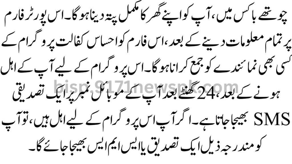 In the fourth box, you have to give your complete home address. After you have given all the information on this porter form, that form has to be submitted to any representative of the Ehsaas Kafalat program. After you are eligible for this program, a confirmation SMS is sent to your mobile number after 24 hours. If you are eligible for this program, you will be sent a confirmation or SMS as follows.