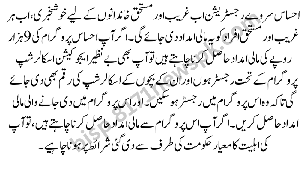 Now we are bringing a new good news for the poor and deserving people that every poor people will register in this program by the government of Pakistan. And they will receive the financial aid received by this program should you. That if your children also want to study but they cannot study because of your circumstances, then you should register your children in this program.