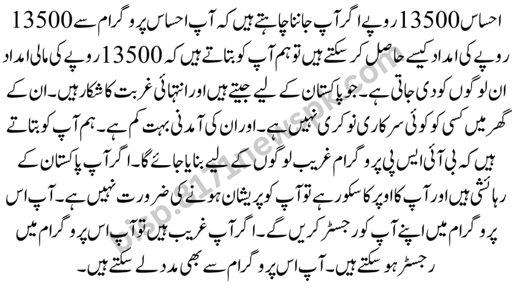Ehsaas 13500 Rupees for Poor People From Government of Pakistan