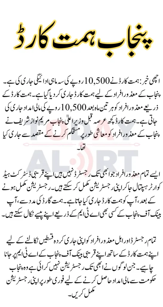 All such disabled people who are not yet registered can go to their nearest District Headquarters Hospital and complete their registration. After the registration is completed, you are issued a Himmat Card. With the help of Himmat Guard, you can withdraw your money through any ATM of Bank of Punjab.
