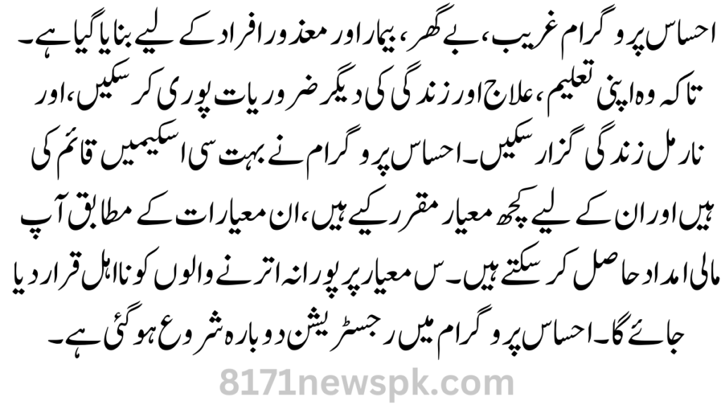 Those who do not meet this standard will be declared ineligible. Registration in the Ehsaas program has started again. Surveys of people are being conducted again, according to this new record, many such people who had qualified for this program will now be eligible for this program