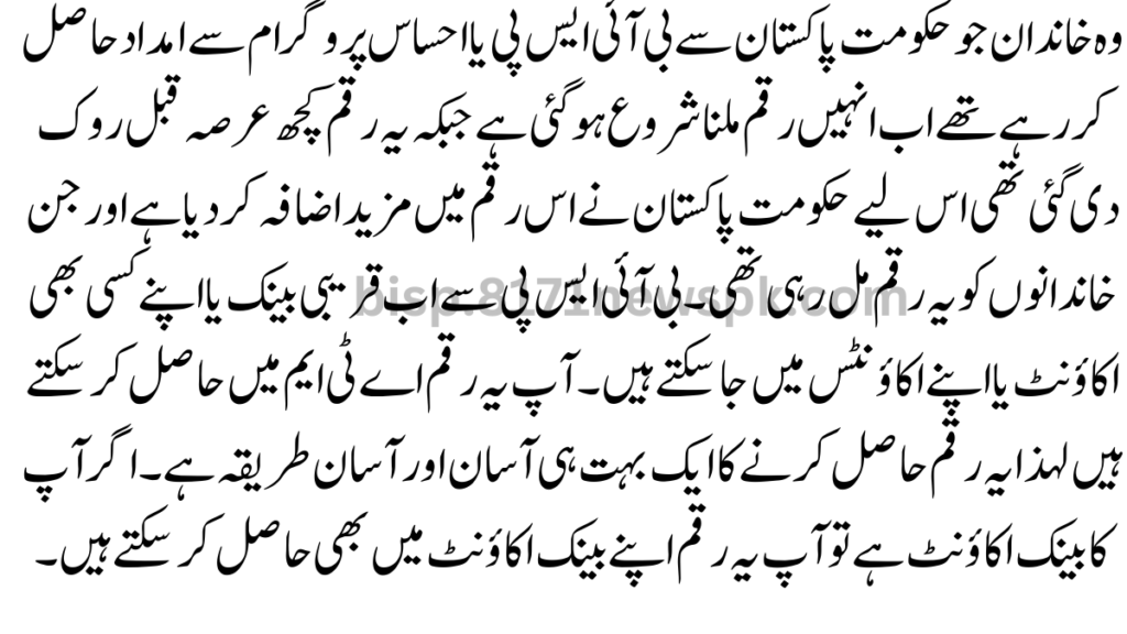 The families who were receiving assistance from the BISP or Ehsaas program from the government of Pakistan have now started getting money, whereas this money was stopped some time ago, so the government of Pakistan This amount has been increased further and the families who were getting money from BISP can now go to a nearby bank or in any of their own accounts or their own accounts. You can get this money in an ATM so it is a very easy and simple way to get money. If you have a bank account then you can also get this money in your bank account.