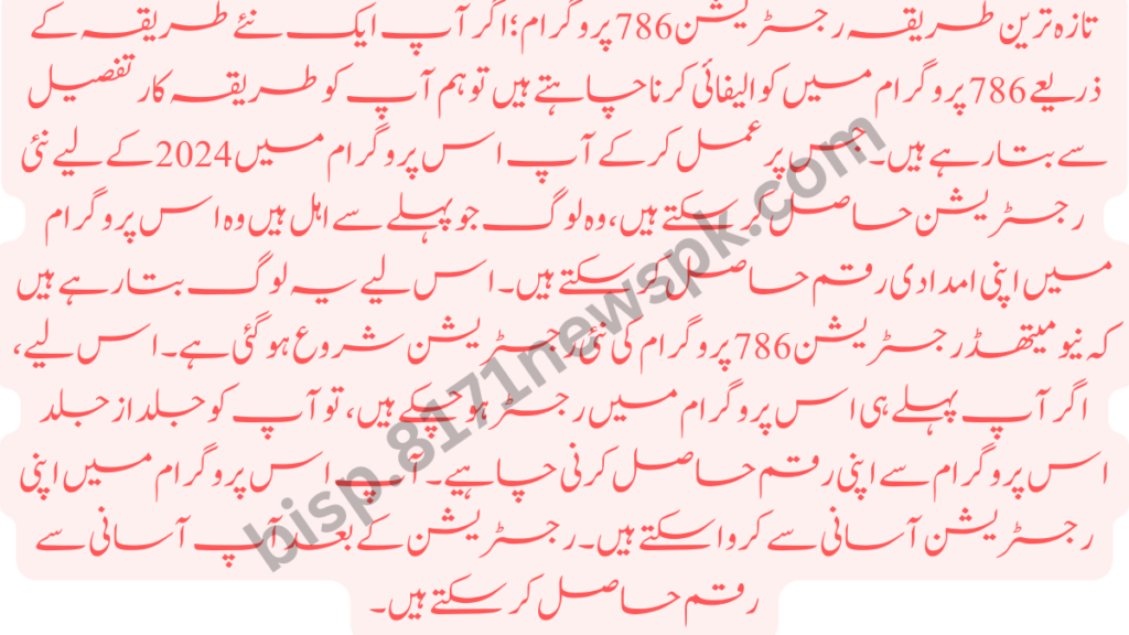 786 Program This is a program created by the Government of Pakistan in the same way that you get financial assistance from the Ehsaas Program. In this way, you can also get financial assistance from this program. This program has also been signed up by the Government of Pakistan. Financial assistance is also given to poor people in this program.