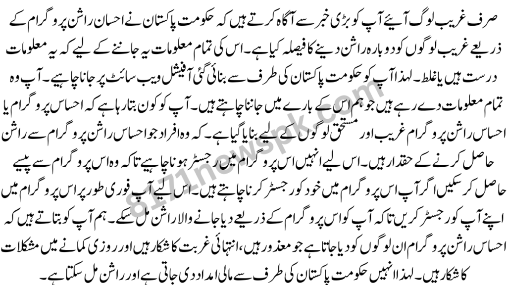 Registration in the ration program has not done, that is, if they face difficulties for registration, then their problems will be solve by the government of Pakistan. If you want to do your registration online in this program, you Read this article of ours carefully, after reading all your problems can be solve, in addition to this, to get all other information, you visit this website of ours, then you will get information about all the programs on it. are give,