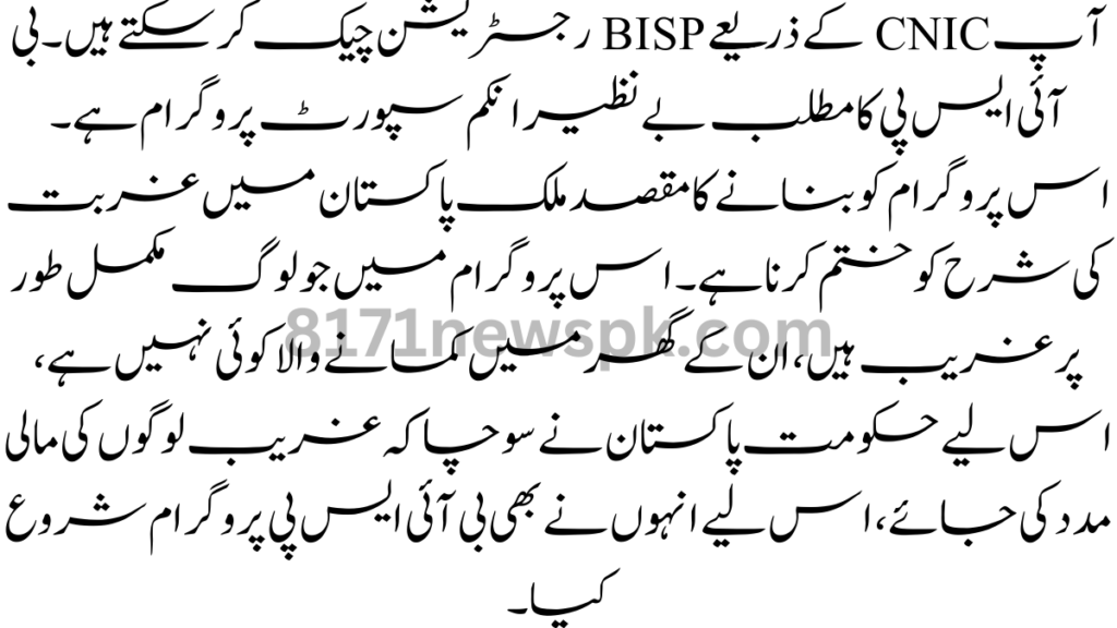 Portal BISP 8171 Latest Update January If you are poor then you will know about the BISP program. If you don’t know what this program is then let me tell you that the government of Pakistan has started this program to help the poor. If you are poor then you can register yourself in this program and become a part of this program and get the assistance given by the government of Pakistan.