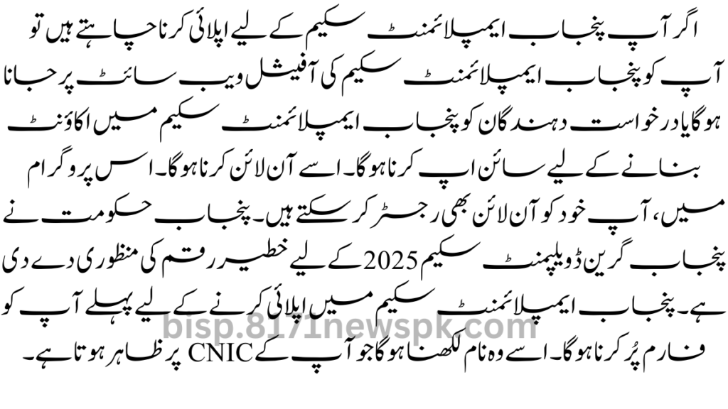 In this program, you can also register yourself online. The Punjab government has approved a huge amount of budget for the Punjab Green Development Scheme 2023. To apply to Punjab Employment Scheme first you have to complete the form. It has to write the name that appears on your CNIC.