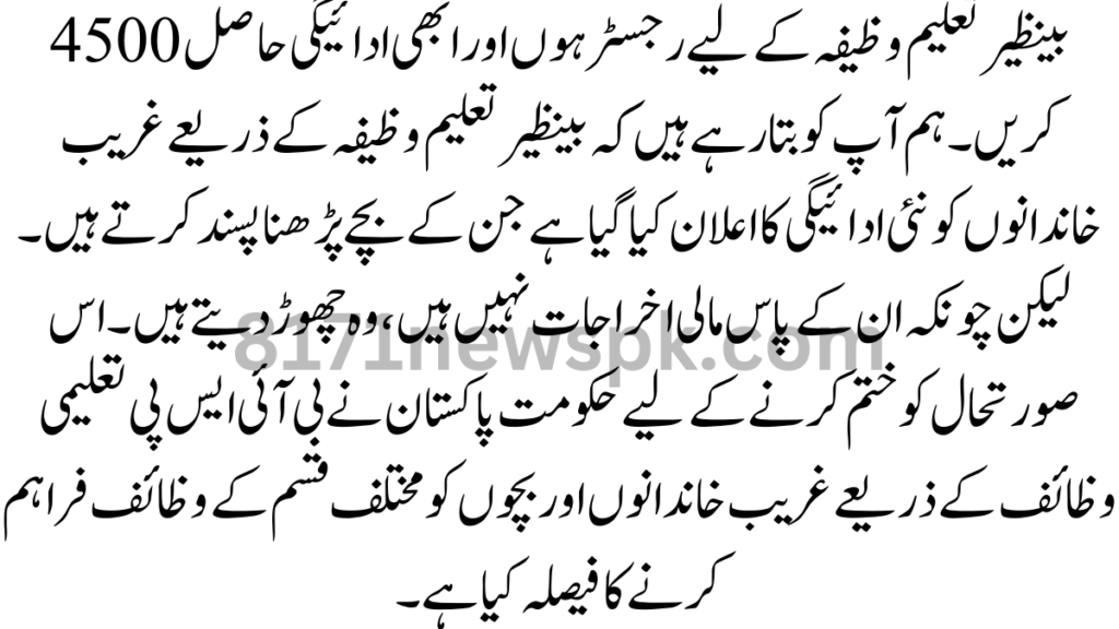 Register for 4500 Benazir Taleemi Wazifa New Form Released