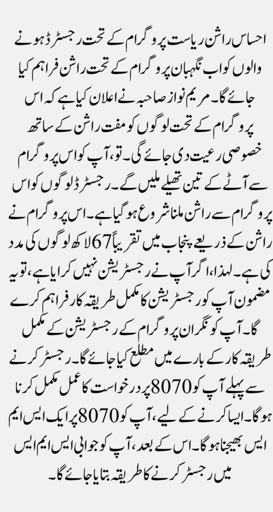 That you are eligible for this program and that you can receive the rashan . And when you go to get rashan or the team will come to your house. So she will enter your CNIC number in the same way and will told that you are eligible for this program and you can get a rashan easily.