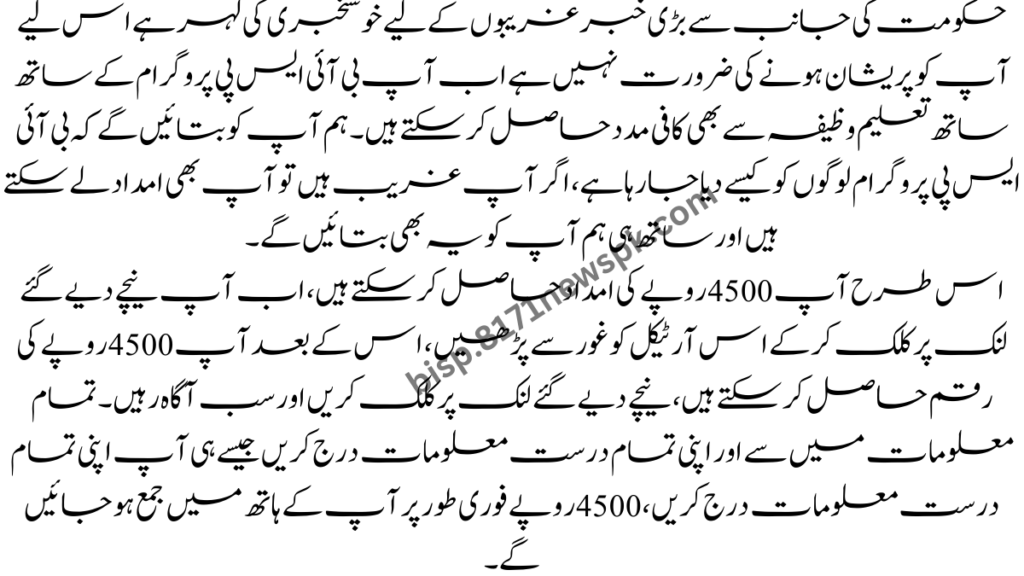 This aid is give to you between 1500 to 4500 rupees. Get this aid and spend your time on your children’s Taleemi Wazifa. And make the next day better. It is also say by the government of Pakistan that the aid is increase and more is increase. Let us tell you that you should give it now. Click on the given link and get all the information