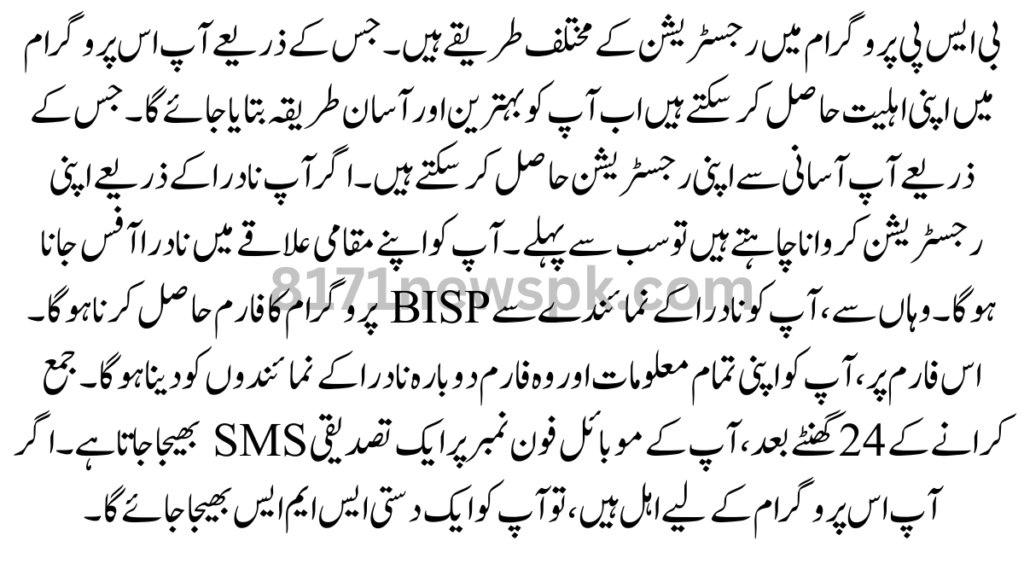 Only poor citizens of Pakistan can qualify for this program. If you want to get your registration in this program through a new method. You will be explained in the below paragraph how you can get your registration done through the application form.