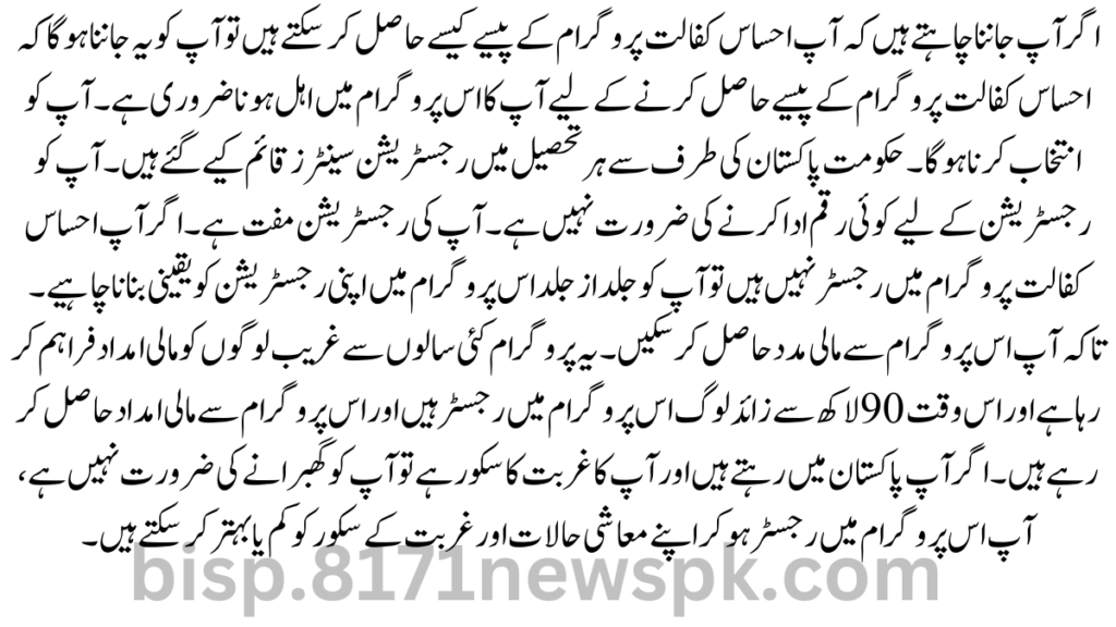 If you want to know how you can get Ehsaas Kafalat program money then you need to know that to get Ehsaas Kafalat program money you must be eligible in this program. You have to make a choice. Registration centers are set up by the government of Pakistan in every Tehsil. You don’t have to pay any money for registration. Your registration is free. If you are not register in Ehsaas Kafalat program then you should ensure your registration in this program as soon as possible.
