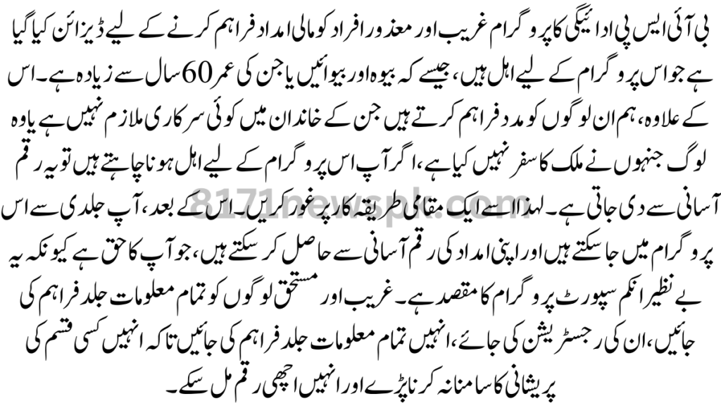 BISP Payment program is design to provide financial assistance to poor and disable people who are eligible for this program, such as widows and widows or those who are above 60 years of age. On top of that, we provide assistance to those who do not have any government employee in their family or those who have not travel to the country, the amount is easily give if you want to qualify for this program.