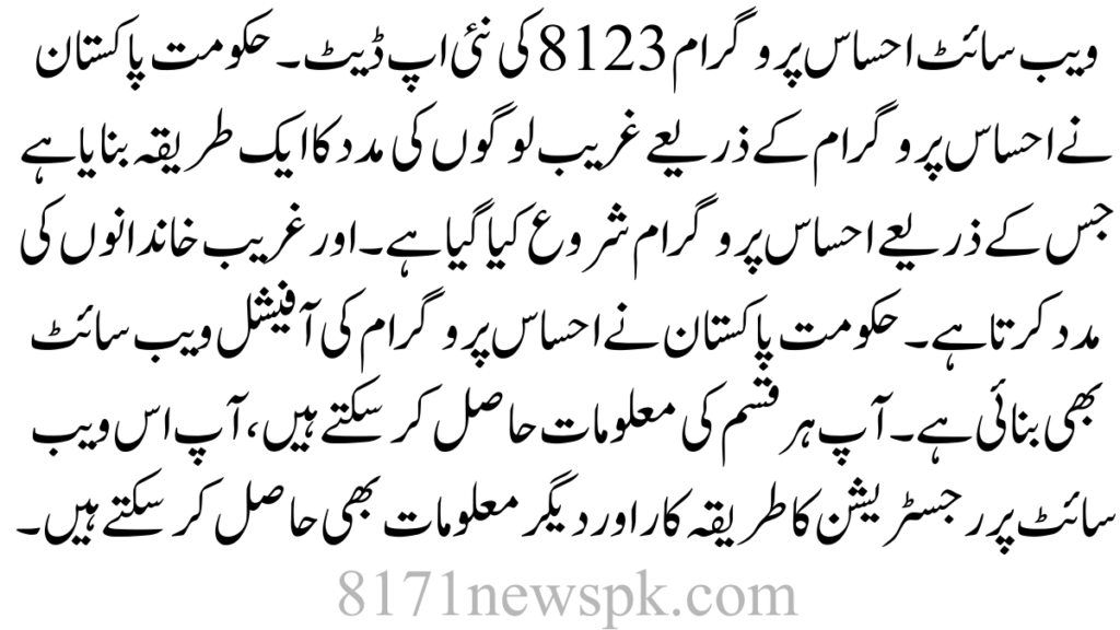Website Ehsaas Program 8123 New Update. The government of Pakistan has made a way to help poor people through the Ehsaas program through which the Ehsaas program has started. And it helps the poor families. The government of Pakistan has also created the official website of the Ehsaas program.