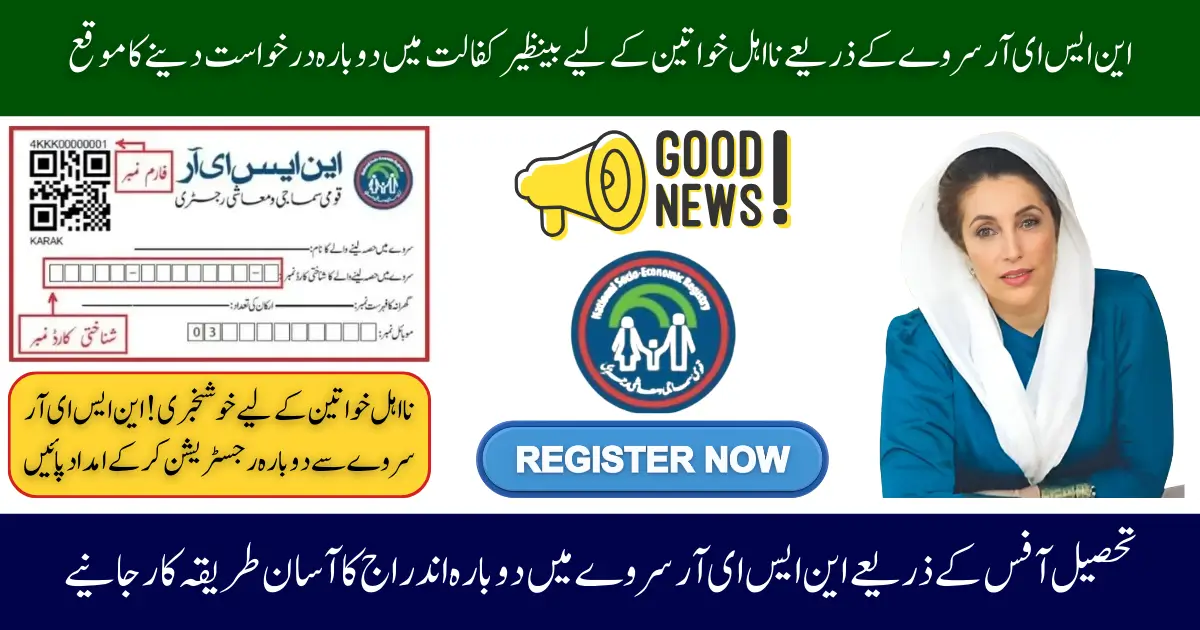 The NSER survey has been introduced as a fresh update for women who have been declared ineligible under the Benazir Kafalat program, giving them another opportunity to seek support. The survey helps in verifying and updating family details, so that only eligible women and households can be re-enrolled. By updating the information, those who were previously left out due to incomplete or outdated records can now re-apply and become eligible.